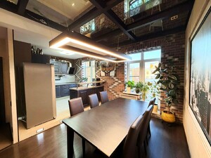 В квартире выполнен качественный дизайнерский ремонт с использованием первоклассных строительных материалов. На первом этаже располагается просторная кухня-гостиная с современным кухонным гарнитуром, барной стойкой и уютной обеденной зоной. С балкона открывается прекрасный вид на улицу. Также на первом этаже располагается комната свободного назначения и первый санузел. На второй этаж ведет устойчивая лестница. Над кухней и в гостинной зоне пол выполнен из прочного стекла. В гостинной располагается удобный диван и телевизор. Также на втором этаже располагается спальная, второй санузел и гардеробная. Отличные соседи, чистый и ухоженный подъезд.